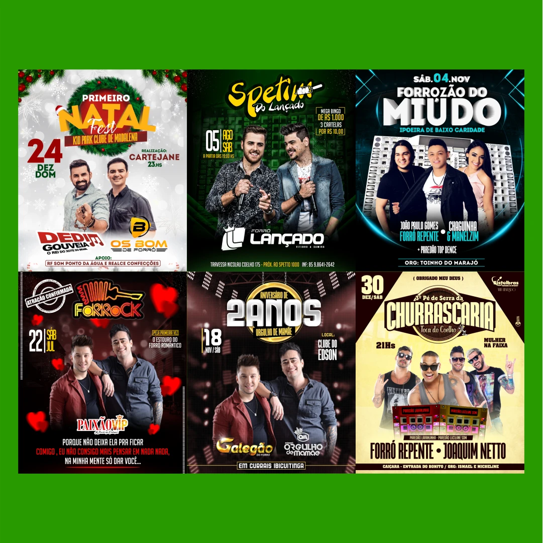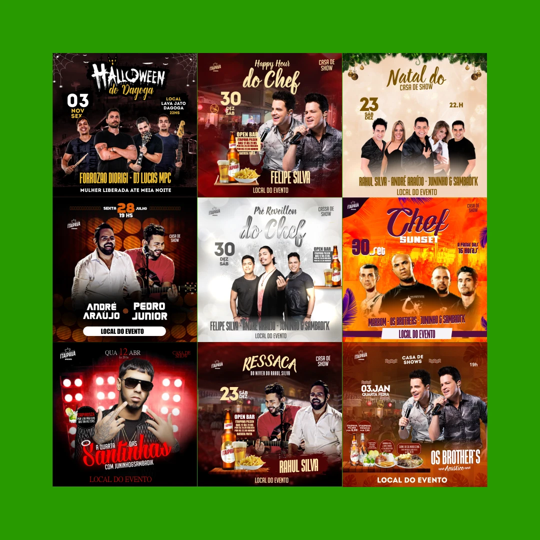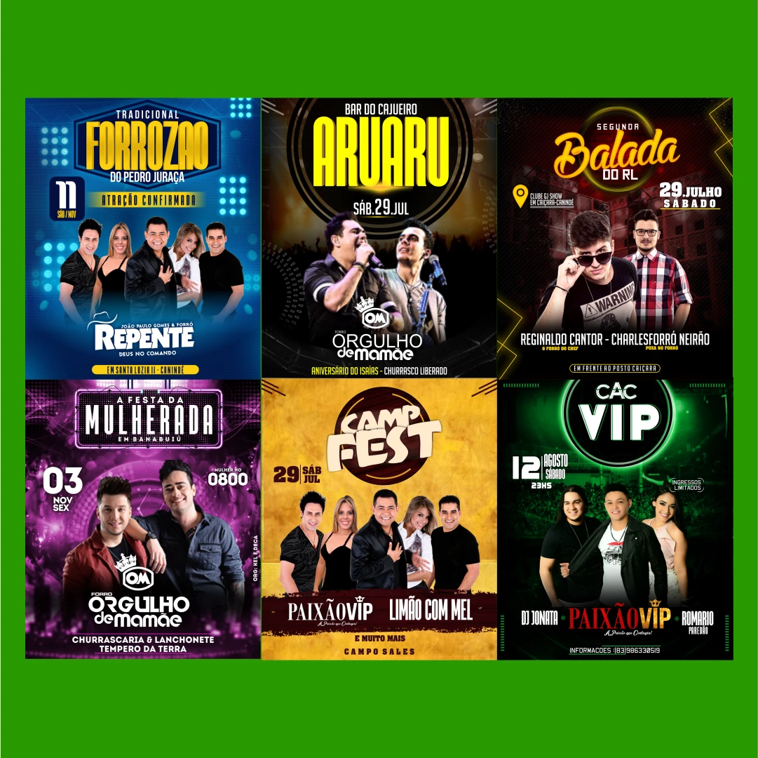 Prepare-se para levar a divulgação dos seus eventos a um novo nível com o nosso Pack de 50 Flyers para Festas e Eventos! Se você é organizador, promotor ou designer, este pacote foi feito para você impressionar e atrair multidões com um visual profissional.