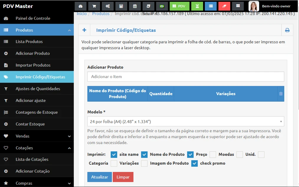 Script PHP Sistema PDV – Caixa + Loja Responsiva